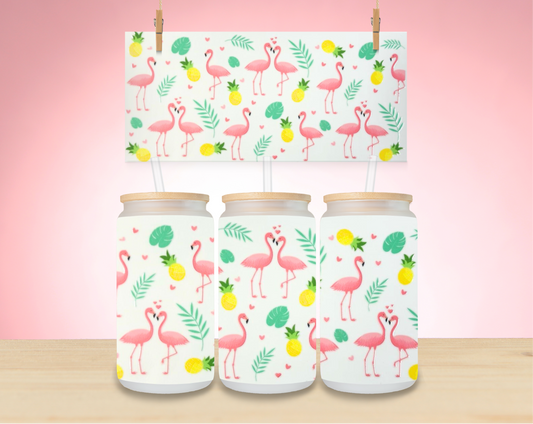 Flock to Fun, Flamingo Glass Snow Globe Tumbler