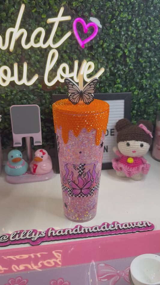 25 oz Butterfly Snowglobe Tumbler – Sparkle & Shine!