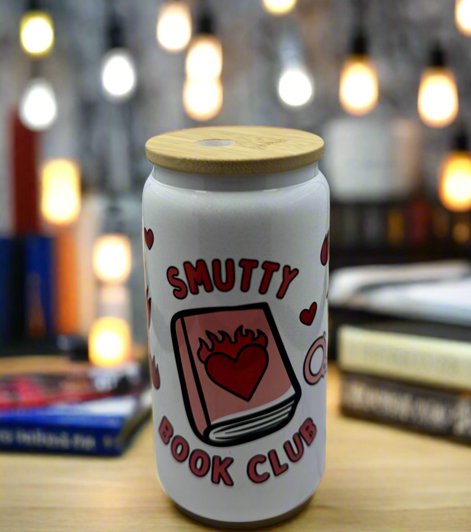 Sip in style while diving into your favorite spicy reads with this 16 oz glass tumbler featuring a fun "Smutty Book Club" design. Perfect for book lovers who enjoy their beverages as much as their stories, this tumbler makes a cheeky addition to your drinkware collection or a great gift for your book club pals!
