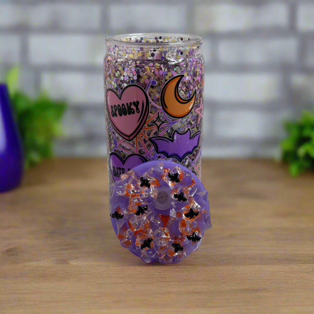 This 16 oz acrylic snow globe is perfect for a spooky Valentine’s Day! Featuring cute bats and spooky sayings on conversation hearts, it’s the ideal mix of Halloween vibes and Valentine’s charm. Shake it up for a glittery, sparkling treat!