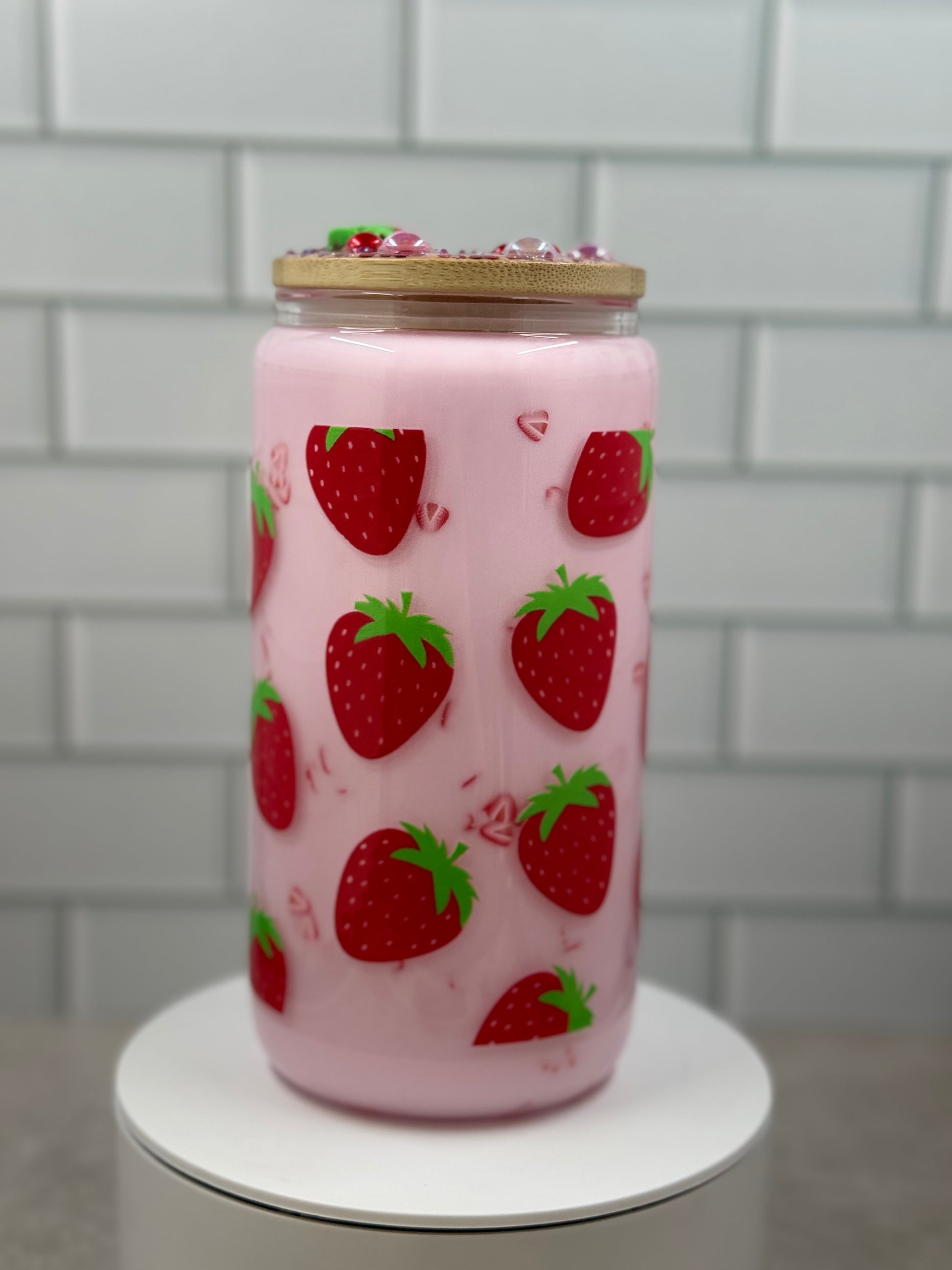 Strawberry Sweetness Glass Snow Globe Tumbler