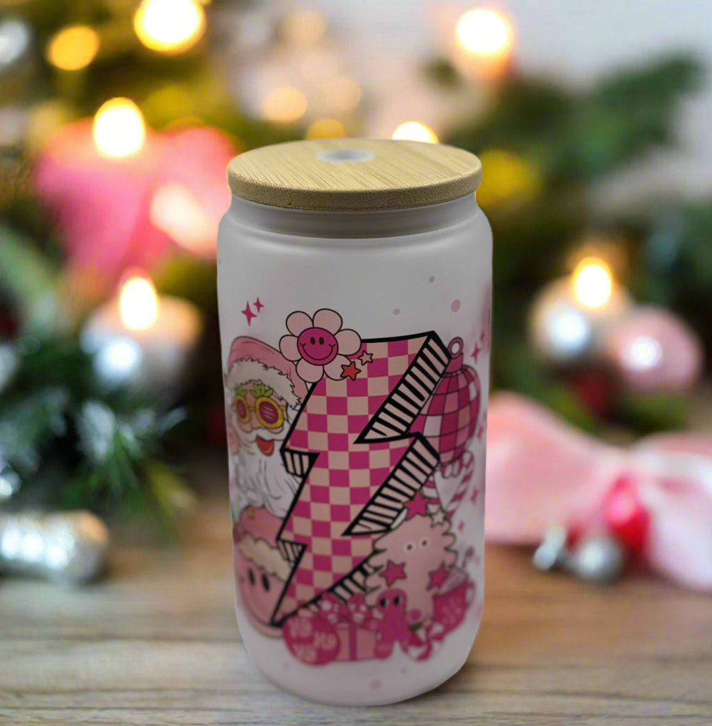 16 oz Glass Pink Retro Christmas-Themed Tumbler