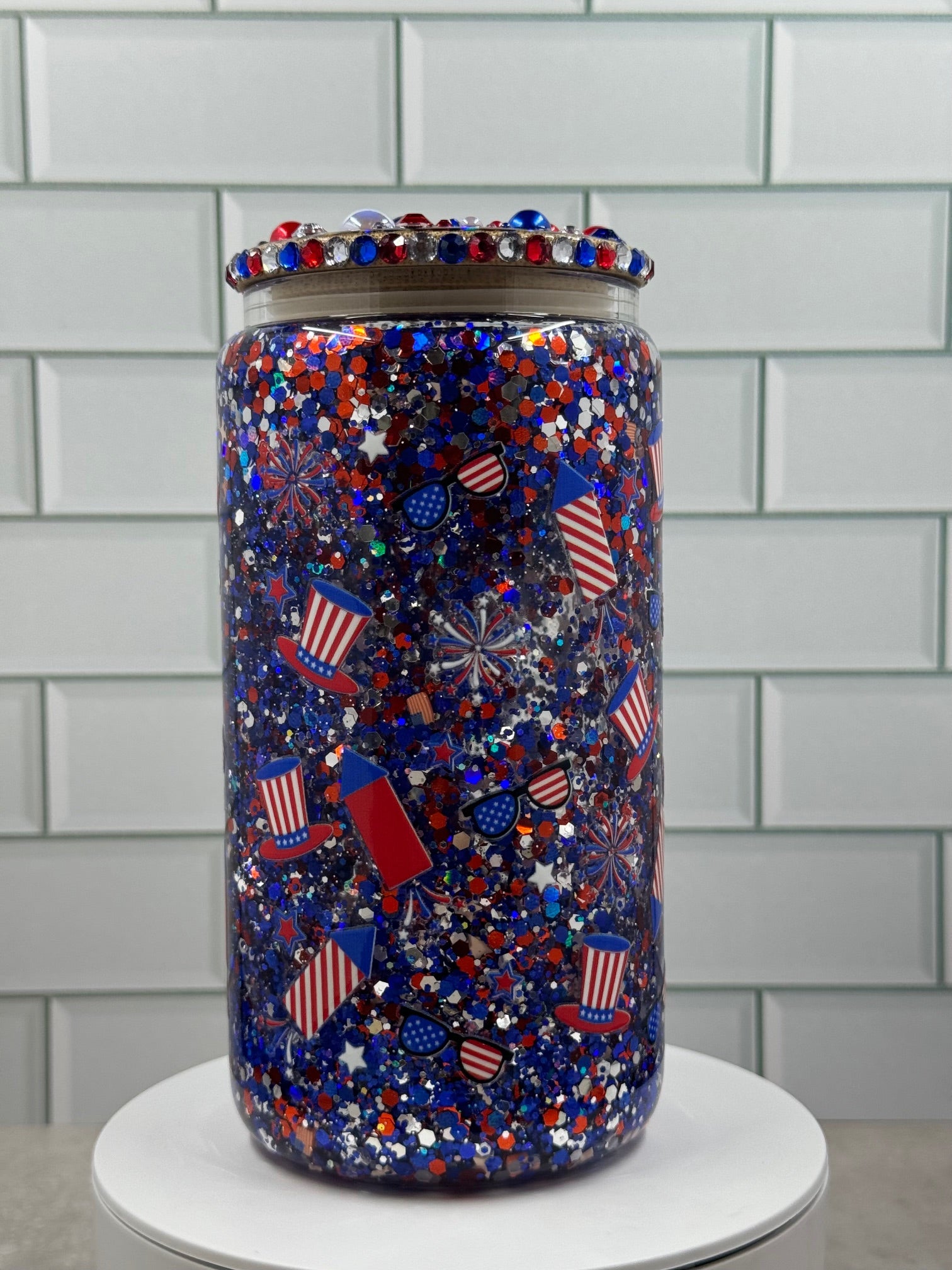 Show your pride with this stunning 16 oz patriotic snow globe tumbler! Filled with dazzling glitter and vibrant colors, this tumbler brings a festive sparkle to your favorite beverages. Perfect for holidays, parades, or everyday patriotism, it’s designed to add a touch of American pride to every sip.