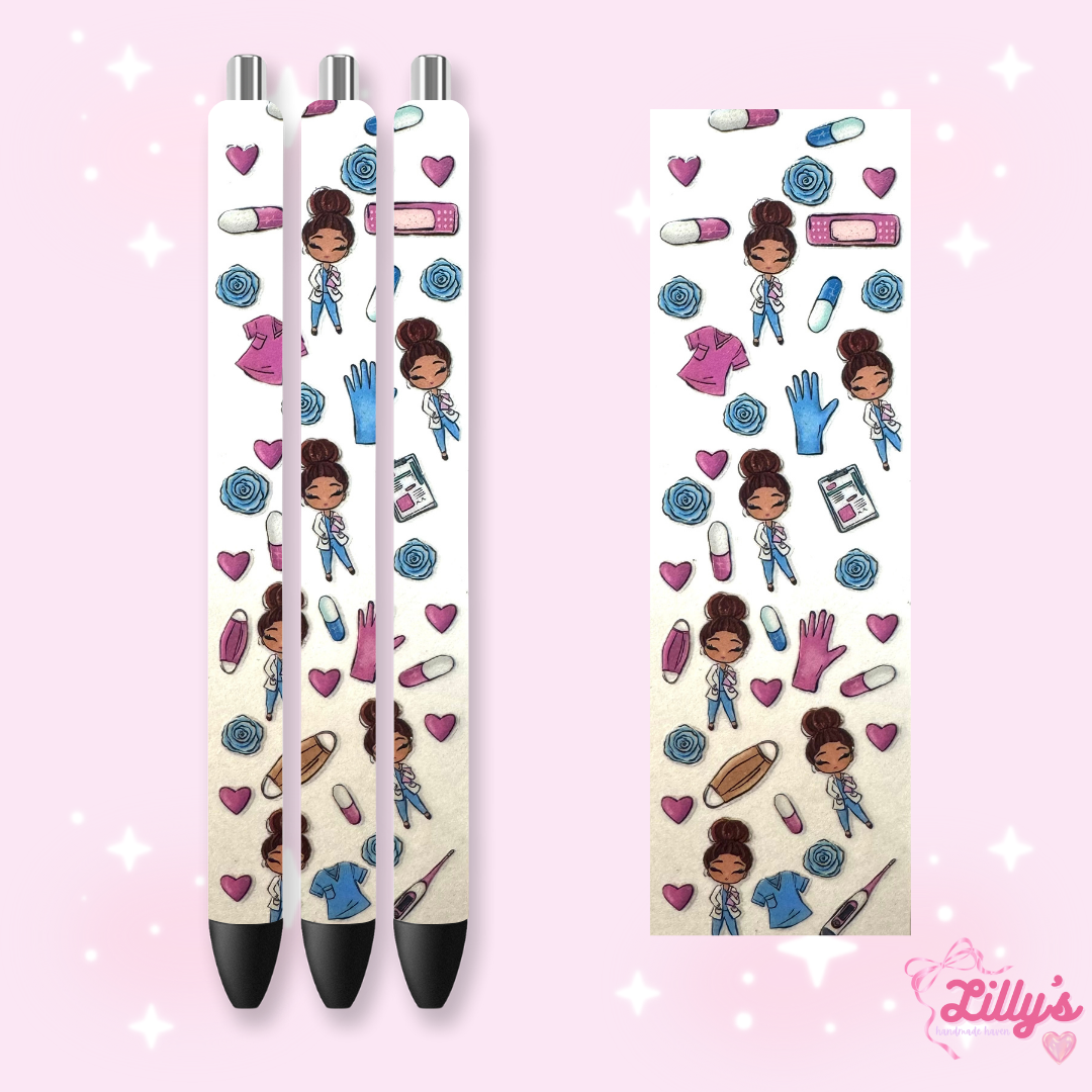 Nurse, Teacher & Sports Custom Glitter Resin Pens β Choose Your Wrap & Glitter